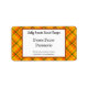 A retro ginham plaid pattern of yellow and orange with smaller brown and green stripes on custom canning or baking labels with script and vintage block letters for your name or small business, recipe title and room for ingredients, weight, address, or more information.