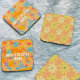 Yellow Orange Retro 70s Daisies Pattern Stone Coaster
