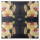 The original artwork on this 6” Ceramic Tile was made from an original photograph by HomeWare of orchid flowers, specifically P. Chain Xen Queen, Yellow/Red Lip. It is a closeup photo, a detailed view of the light yellow flower petals surrounding deep red lips at the bloom's centre. There is also a touch of lavender before the petals turn to yellow. The background of the orchid pattern is in shades of deep grey to black. In the centre of the design, there is monogram text in a light gold colour. This is set to personalise, or delete if you prefer.