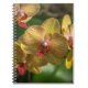 A close up photograph of beautiful yellow orchids printed on the cover of a notebook