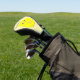 This owl design golf club head cover is an accessory that you slide over the head of a golf club for protection against knocks whilst sitting in your golf bag. Made out of polyester, cotton, and marine vinyl with a choice of different piping colours. You can customise this golf club head cover with any text. Should you require any help with customising then contact us through the message link on this page. Yellow owl design golf club head cover.
