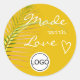 Yellow Palm Tree Leaf Made with Love Logo Template Classic Round Sticker