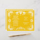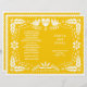 Yellow papel Picado love birds wedding fiesta folded program. It displays two white lovebirds and a love heart with the word love and flowers, leaves and small dots on red on yellow background. This Mexican folk art style floral wedding template design is fully customisable. Use only this type of paper as it folds well.