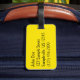 This was purchased as part of a 40th Birthday present for my nephew who is going to Vegas. It is made of high quality, very study and we decided only to put his name on the back of the tag, but you can add a full address if you so wish.