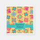 These name personalised paper cocktail napkins are great for an event or party to say Congratulations to a quilter or quilt lover. The napkins are customisable with the words "Happy Retirement" and personalised with her name. These paper napkins combines favourite quilt blocks plus unique blocks to form a quilt design with vibrant and dynamic colours on a warm yellow background. A turquoise teal blue bar and emblem gives a place for the customisable words. The patchwork blocks feature stars, applique, pinwheel, log cabin and other favourite quilt blocks. Small flowers and blue dots are on the background between the tossed blocks. This quilt art is from fabric and quilt designer Phyllis Dobbs and is available on coordinating paper plates and other products in this store. Fully customisable for a fun party.