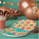 These paper plates are great for an event or party to say Happy Retirement to a quilter or quilt lover. The paper plates are customisable with the words "Happy Retirement" and personalised with her name. This party plate combines favourite quilt blocks plus unique blocks to form a quilt design with vibrant and dynamic colours on a warm yellow background. A turquoise teal blue bar and emblem gives a place for the customisable words. The patchwork blocks feature stars, applique, pinwheel, log cabin and other favourite quilt blocks. Small flowers and blue dots are on the background between the tossed blocks. This quilt art is from fabric and quilt designer Phyllis Dobbs and is available on coordinating products in this store. Fully customisable.