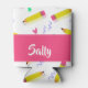 Add your name on this yellow pencils and scrabbles on white background pattern design.