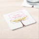 Yellow Pink Floral Bird Baby Shower Square Paper Coaster