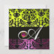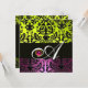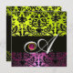 YELLOW PINK PURPLE BLACK DAMASK MONOGRAM Amethyst Invitation