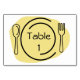 Colourful customised table cards dotted with plates, knives and fork illustration. Ideal for general catering, parties or businesses. (6 colours to choose from or mix and match)