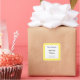 A custom recipe or candle sticker with blue and black retro script and block letters on a yellow and white country plaid checked pattern. This template has three lines for your custom text, edit to add or delete lines, change fonts or background colours!