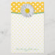 Pretty personalised stationary done in white with yellow polka dots. The top of the stationery is done in bright yellow, with a green gel looking edge and a single white daisy in the middle. Personalise the green text at the bottom of the paper to suit your needs.