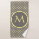 Yellow polka dots monogrammed grey bath towel set