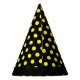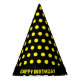 Yellow Polka Dots on Black Happy Birthday Party Hat