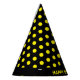 Yellow Polka Dots on Black Happy Birthday Party Hat.