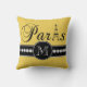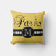 This chic black, white and yellow polka dots pattern throw pillow with personalised your monogram initial, the word "Paris" with the Eiffel Tower and a line of printed white diamonds on a black band will look amazing in your bedroom or living room as an accent pillow. Monogram Gallery Gifts© Elke Clarke Designs ©