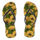 Yellow poppies on dark green flip flops