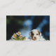 Yellow Puppy with brown ears looking over iron fen Business Card