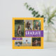 Stylish graduation announcement card and party invitation features six senior photos with "GRADUATE" as a large focal point. Personalise the modern custom text with your grad's name, school, and class year. This two-sided card design includes graduation party invitation wording on the back. Customise the colours of the picture frame and boxes on the front and the boxes on the back to match your school colours or coordinate with the photography. Available in the most popular and common school colour combinations - green/yellow, red/yellow, crimson/gold, blue/yellow, navy/gold, black/gold, black/yellow, purple/yellow, red/silver and red/black. Matching products and other colours available.