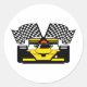 YELLOW RACE CAR CLASSIC ROUND STICKER