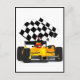 Vroom, Vroom!! Send a quick note with this Yellow Race Car with a winning chequered flag postcard!