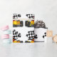 Vroom, Vroom! Jazz up your gift! Yellow Race Car with a winning chequered flag makes a nice cover for presents or use as decorating paper or for your sports crafts! Racing fans and fast car lovers will like this unique gift wrap. The race car design can be resized to be smaller or larger, you can add background colour and there are several paper types and sizes available for this Sport Race Car paper.