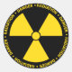Yellow and black radiation symbol sticker with "Danger - Radiation" in repeating yellow text.