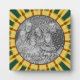 Yellow and brown abstract rays design with aura colour emanations frame create your own photo tabletop plaque. Design by Susan.