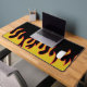 Add some fire to your office decor with this desk mat. It features illustrations of classic flames in yellow and red against a black background for a tough, manly look. Your name or other message is in golden yellow lettering.