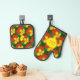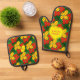 Yellow Red Flower Pattern with Green Background Oven Mitt & Pot Holder Set