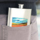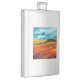 The product is a good size and came exactly as it was pictured. The lid is not attached to the flask, which could be dangerous on drunken nights... The print came out surprisingly well and looks very sharp. Would definitely recommend.