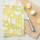Yellow Retro Baking kitchen towel with a cute retro style pattern with baking implements and simple retro flowers all in yellow and white. You can make the pattern larger or smaller on the kitchen towel.