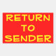 Sticker with yellow "Return to Sender" on a red background. Use on mail to get your point across to the person sending this mail to you. Customisable.