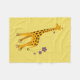 Funny giraffe blanket with a cute giraffe nibbling on a violet flower and holding some flowers with its tail while skating with roller skates which wheels are made of flowers, on yellow background. This cute design will make a great gift for someone who loves giraffes, cartoon animals and cute illustrations.