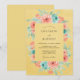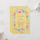 A vibrant display of coral and teal blossoms cascades around a warm yellow background. Delicate pink roses intertwine with lush greenery, creating a lively and romantic atmosphere. This design evokes a sense of joyous celebration.
