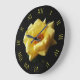 Yellow Rose On Black Yellow Script Roman Num wcm Large Clock