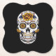 Yellow Rose Sugar Skull on Black Paper Coaster