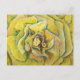 Painting of a vibrant yellow rose in close-up as petals swirl outward. Cool blues, purples, and greens provide vibrant contrast to the shadows and accentuate the motion of the yellow swirl. Personalise the yellow rose art postcard print with your own text and images using the "Customise It"options to make special yellow rose postcards!