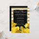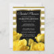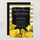 Beautiful yellow roses and gold stripes bridal shower invitation. Elegant way to invite your guests to a spring or summer bridal shower. A black rectangle contains the bridal shower information, which is surrounded by a sleek gold frame. All text can be edited. You can also change the text font, size and colour.