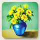 Yellow Roses in a Blue Vase Boho Art Coaster
