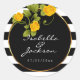 Yellow Roses on Black and White Stripes Classic Round Sticker