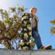 Yellow roses on black skateboard