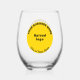 Yellow colour and round shape business brand on stemless wine glass. Customisable wine glass that you can include in your promotional products, giveaway items or gifts to your customers or clients to advertise your business or to promote your brand name. Customisable drinkware that you can use to build brand name awareness. Customise it by uploading your business logo, typing your business name and the location of your business. Please check the appearance on front and back sides after uploading logo and typing texts. If the appearance is pleasing to you, you can place your order now. If you need to resize and move the logo and texts, please change in the design tool. You can also change the font colour, colour of the round shape background and font style in the design tool.