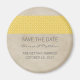 Elegant and chic Rustic Damask Save the Date Magnet featuring a vintage textured paper look background and a flourish damask pattern border in yellow. Easy to customise, simply add your wedding details. Click "Customise It" to find more personalisation options.