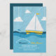 A juvenile, nautical invitation perfect for celebrating birthdays or for a baby boy shower. The "crumpled paper" background features a yellow sailboat in a sea of two-tone blue with jumping fish, seagulls and clouds hanging from a string. (<a href='http://www.freepik.com/free-vector/crumpled-background-with-paper-boat-sailing_1113801.htm'>Designed by Freepik</a>). <br/><br/>The card is easy to customise with your wording, font, font colour, paper shape options and choice of six paper types.<br/><br/>Not exactly what you're looking for? All our products can be custom designed to meet your needs at no extra charge.<br/><br/>Simply contact us at askcottonlamb@gmail.com.<br/><br/>Coordinating products available: Just ask us!