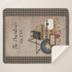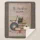 This country Sherpa blanket is perfect for your primitive antique home. There's a mustard yellow saltbox colonial house, a grapevine star, blue primitive plate with star on it, a fluffy white sheep, a framed SIMPLIFY picture and lots of red pip berry vines. The background is done in a linen fabric look with black and tan check border. Personalise with your family name and date established with the easy to use template provided. Several other coordinating designs are available in my shop, as well as matching pillows. You can find me at www.zazzle.com/digiscrapthat. This would also make a wonderful wedding gift!