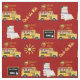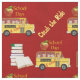 Happy group of teddy bear kids heading back to school in a little yellow school bus. Bus text says School is Cool, other typography says "Catch the Ride" and School Days. Sunshine, apples and chalkboard accents. Customise name on the two chalkboard areas with your child's name. Or delete the text if you wish that area without. Rich red background.