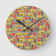Yellow School Bus Stop Sign Traffic Lights Pattern Round Clock