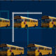 School buses on navy background for crafts, quilting or any projects to give gifts for children, monitors, teachers, and school drivers.