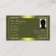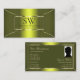 Yellow Shimmer Olive Green with Monogram and Photo Business Card
